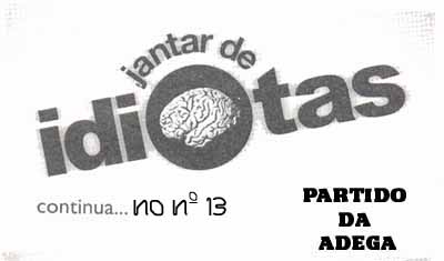 A data para já permanece no segredo dos deuses, mas está prometido que no final existirá mais uma edição do JANTAR DE IDIOTAS agora na nova sede do PARTIDO DA ADEGA. O director de informação do SORRIS está em condições anunciar que após o anúncio noutro blog (desconhecido de qualquer leitor que se preze ser um sardoalense interessado nos assuntos reais) da não existência de sede do partido e de algumas mentiras que procuram denegrir o Partido e quebrar a união do mesmo, o militante BOTAS irá ser alvo de um processo disciplinar.